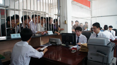 上圖為裝修一新的保德辦事處,工作人員正在認真核對票款